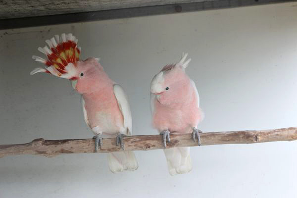 Steve Groome described another interesting observation. He bought four birds at the age of one year. He let them choose their partners spontaneously and consequently put these two pairs to adjacent aviaries. However, after 10 years of trying everything possible he wasn’t able to breed them. That’s why Groome decided to sell one pair. A few weeks later, another pair laid eggs and raised three chicks in a nestbox which was present in their aviaries for 10 years! This is an evidence of Rowley‘s and Chapman‘s observation who found out that Major Mitchell’s Cockatoos don’t tolerate any other pairs of the same species around their nest.